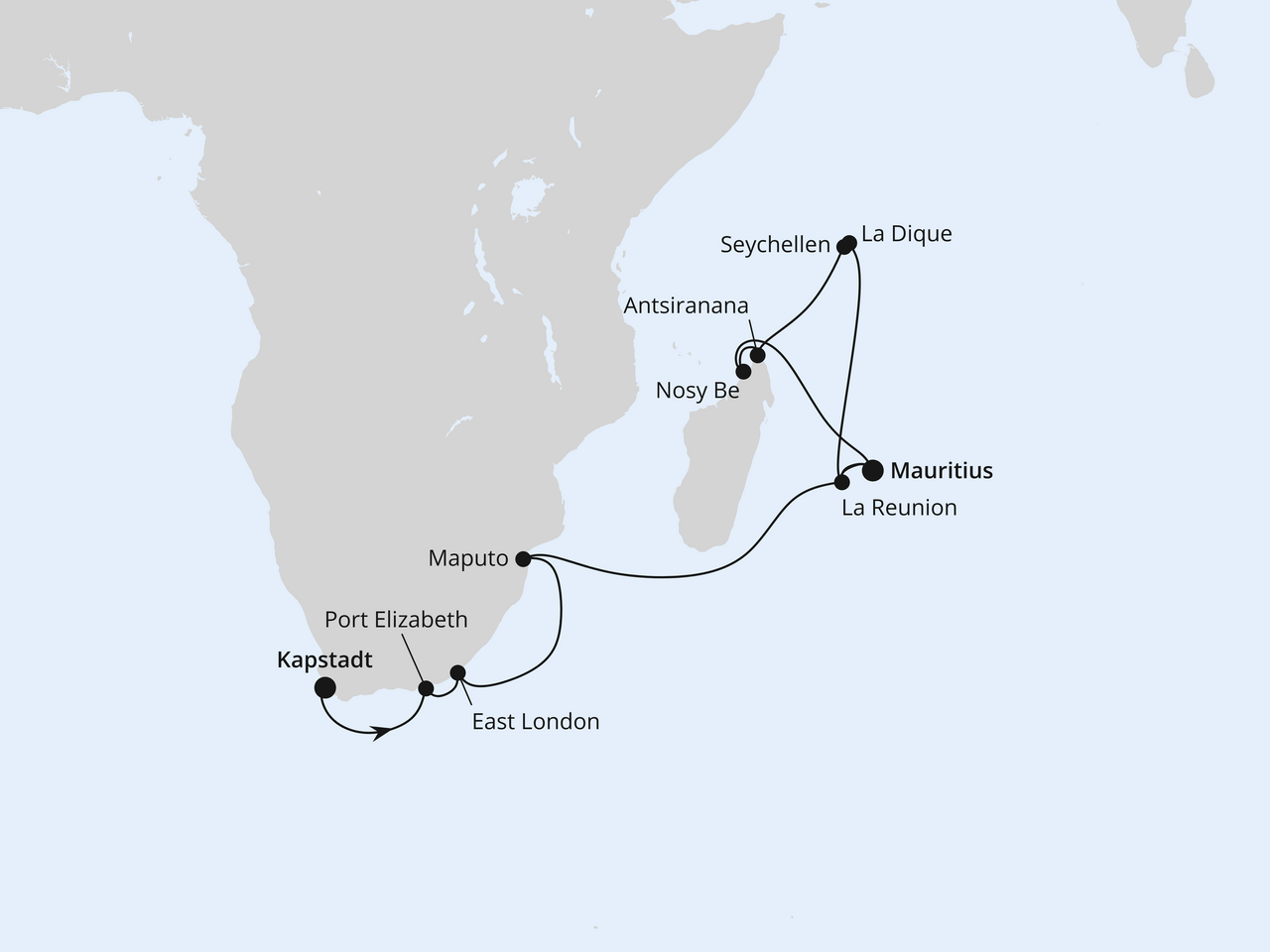 AIDA bringt dich zu den schönsten Zielen der Welt. Beliebte Routen beinhalten: